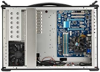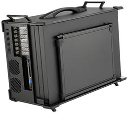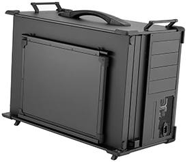 The Apollo-A10 is a three screen portable computer in a standard-atx or extended-atx format mainboard setup offering 7 full length slots for your proprietary cards. This unit is built using heavy duty metal ideally suitable for field use plus industries such as gaming and video development applications. Also the Apollo-A10 portable pc offers a standard (3) 23.8" 1920x1080 resolution LCD displays and also an upgraded option offering (3) 23.8" 3840x2160 resolution LCD Displays. This unit has dual system cooling side fans and easy access to its expansion ports for immediate system upgrade or maintenance. The Apollo-A10 with its extra-rugged construction to sustain bumps and impacted blows is the most cost-effective, durable and efficient portable solution for your needs.